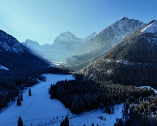 Enjoy delicious food in the Nature Park Karwendel surrounded by the magnificent mountainscape. The innkeepers offer hot meals all day, homemade cakes and hearty Tirolean snacks. Find a seat on the cosy sun terrace in summer and in winter and enjoy the view over the Falzturntal and the distinctive mountains Lamsenspitze and Sonnjoch.