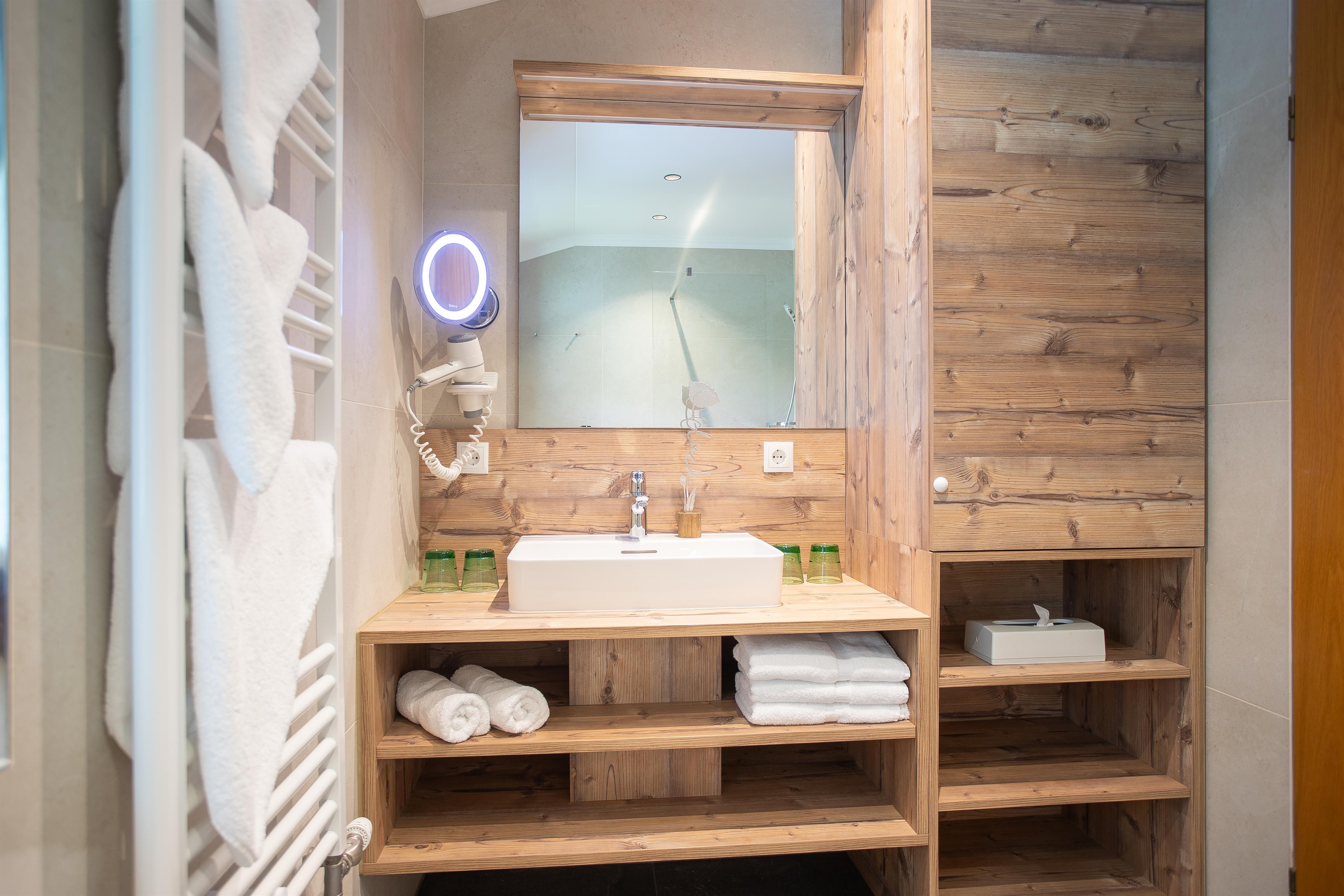 This apartment is located in an apartment building. Our guests are welcome to use the wellness area of the Alphaus Aparthotel, which is a ten-minute walk away.